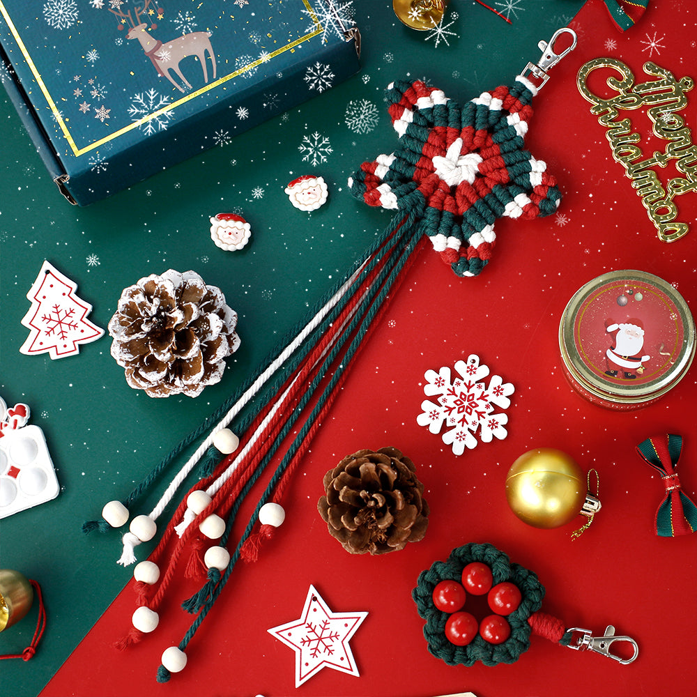 Christmas 4-Strand Braid Keychain Kit Macrame Kit | Phone Charm/Wristband | English Tutorial | Beginner-Friendly | Handmade Gift