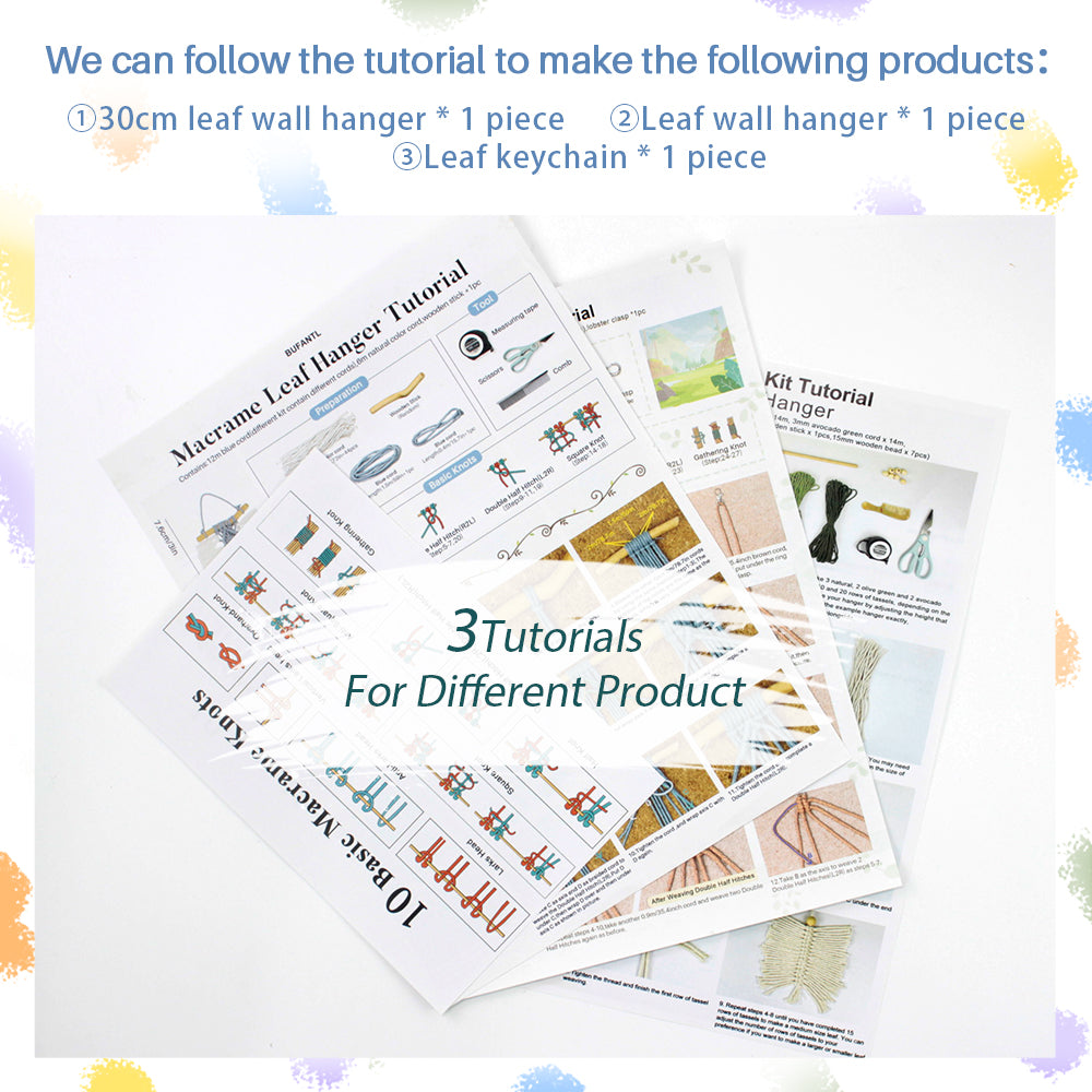 Macrame Kit 3pcs Leaf Set Weaving Kit | English Tutorials | Tapestry/Keychain | Bohemian Style | Beginner Weaving