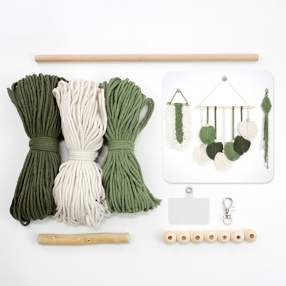 Macrame Kit 3pcs Leaf Set Weaving Kit | English Tutorials | Tapestry/Keychain | Bohemian Style | Beginner Weaving