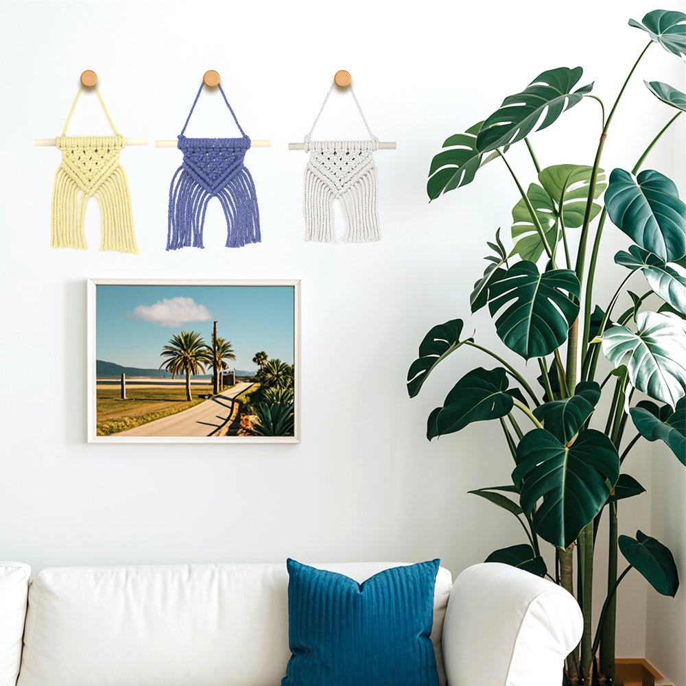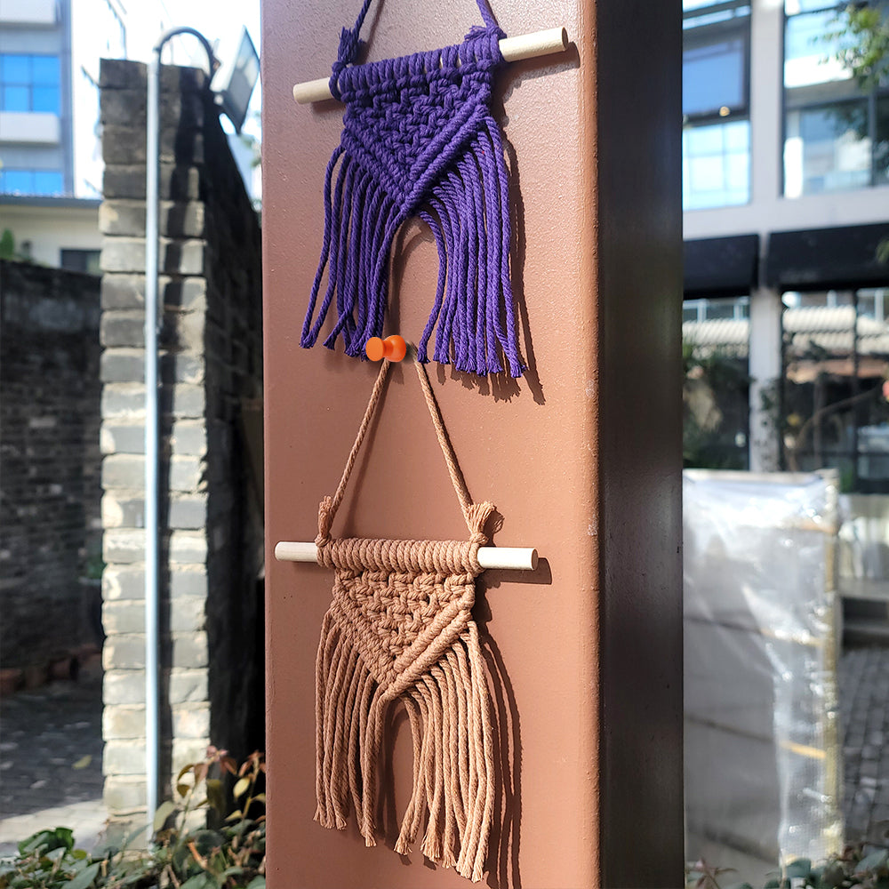 Want to unlock "low-cost + high-style" Bohemian-style solid color decorations? This 3pcs Mini Triangle Tassel Tapestry Set (Macrame Kit) fits perfectly! Material quality is reliable: 3 colors of polyester weaving threads (12m for each of the 3 solid colors, saturated and uniform color, non-aging with long-term hanging, tassels not easy to knot, beginners no need to worry about later maintenance, solid color weaving no need to worry about color matching, easy to get started), 3pcs 15cm wooden sticks (moderate thickness not easy to break, natural wood grain matches solid color threads to enhance texture, no need for additional polishing); double tutorials support "zero-based friendliness": learn basic knots first then practice tapestry weaving, avoid complex knots, focus on marking triangle proportion control and tassel length adjustment skills, ensuring beginners can produce neat products even for the first time.the 3 tapestries can decorate the living room, bedroom and entrance respectively, with unified solid color style and unique features, avoiding visual clutter; compared with buying ready-made mini tapestries separately, the DIY version can choose solid color matching according to preferences, with a stronger sense of exclusivity. As an entry-level Macrame kit, it allows beginners to enjoy weaving fun and gain 3 practical decorations at one time; gifting to friends who like Bohemian style during festivals is lightweight and thoughtful—buy without hesitation!