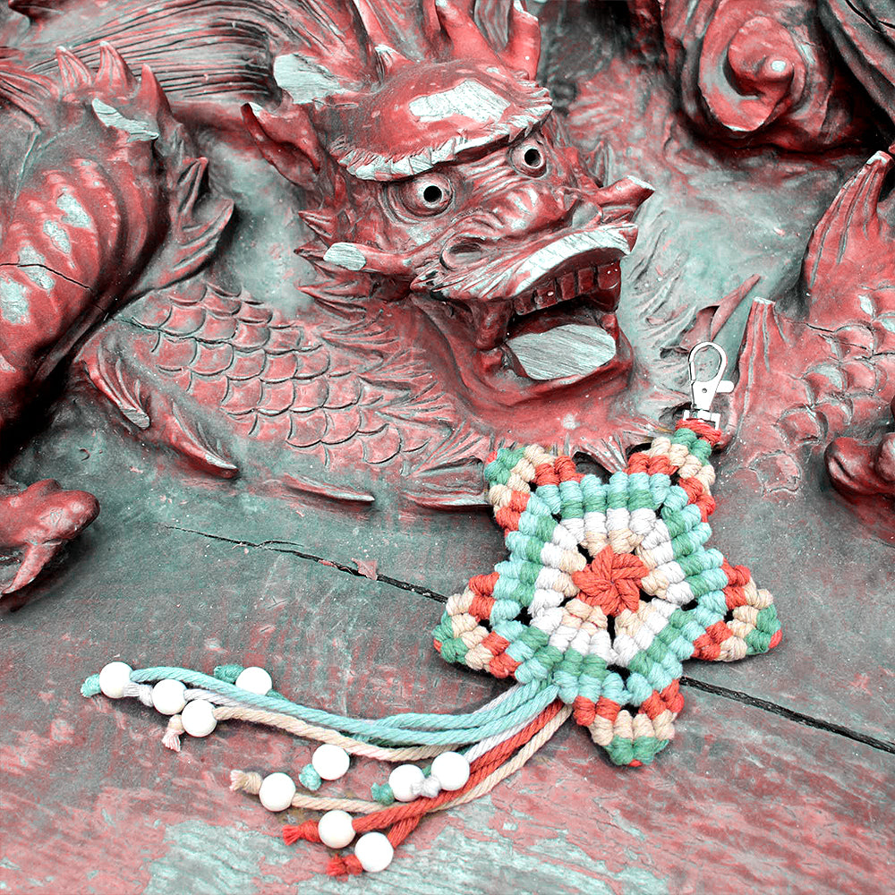 Macrame Kit 5-Pointed Star Keychain Weaving Kit | Multi-Colors | Fringe + Wood Bead Decor | Wristband/Anti-Lost Strap | Beginner-Friendly