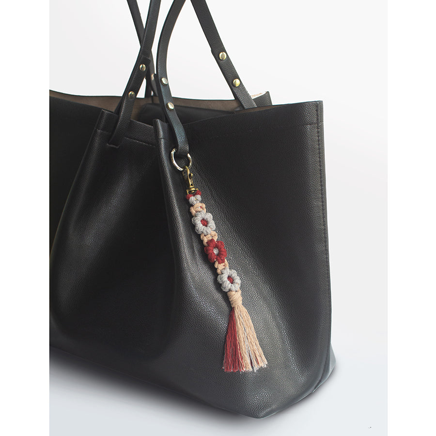 Macrame Kit Bohemian Style Interval Color Small Daisy Tassel Keychain Weaving Kit (Tassel Weaving Set): Polyester Rope, Tutorial, Antique Copper Lobster Clasp, Phone Clip. For Pendants/Bag Charms Beginner Handmade DIY