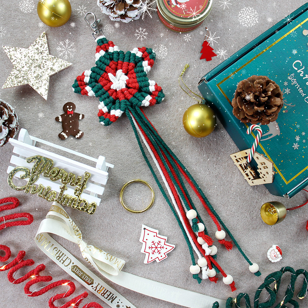 Macrame Kit Christmas Pentagram Bead Tassel Weaving Kit | Christmas Pendant/Car Ornament | Phone Charm | Beginner Weaving
