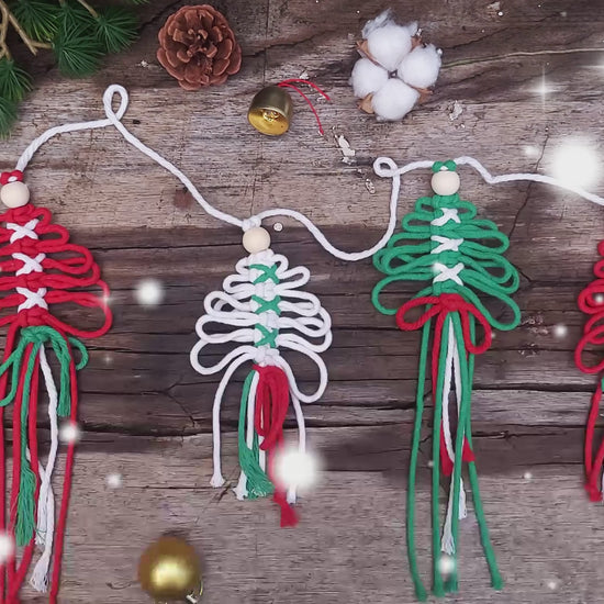 Macrame Kit Christmas Tassel Tree Banner DIY Set - Beginner-Friendly, Layered Coil Design, Home Living Room/Christmas Tree Decoration, Holiday Handmade Gift, Christmas Banner Decoration