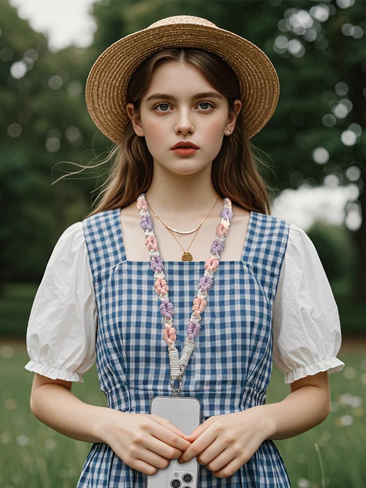 This Daisy Phone Lanyard Weaving Kit (Macrame Kit) is a practical craft choice for beginners and DIY lovers! Material details are complete: 3 colors of polyester weaving rope (4m each, soft and skin-friendly with no discomfort when wearing, even color for spaced-color daisy weaving), 2 spring clasps (smooth opening, sturdy, easy to switch hanging scenarios), 1 phone clip (fits most phone models, easy to install), plus 1 simple and detailed weaving tutorial.The highlight is the spaced-color daisy weaving design—simple steps make it easy to master, even beginners can create elegant finished products. With multiple color options, you can find a match whether you prefer fresh, bright or calm color palettes. It’s versatile: as a phone lanyard, the length is moderate without being cumbersome; it works as a camera lanyard to free hands; it can also be a bag charm or anti-loss strap. Perfect for personal use or gifting!
