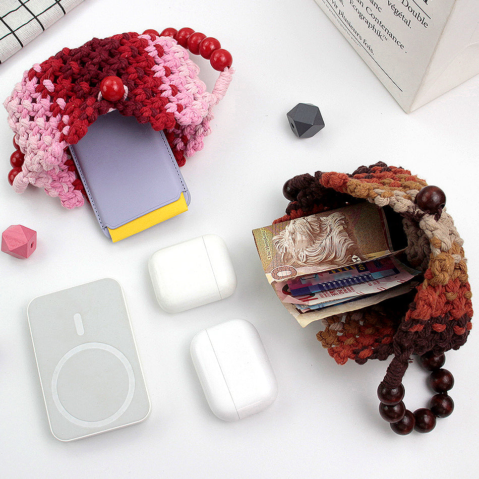 Macrame Kit Heart-Shaped Beaded Tote Weaving Kit | Dopamine Colors | Commute/Outing Use | Beginner-Friendly | DIY Gift