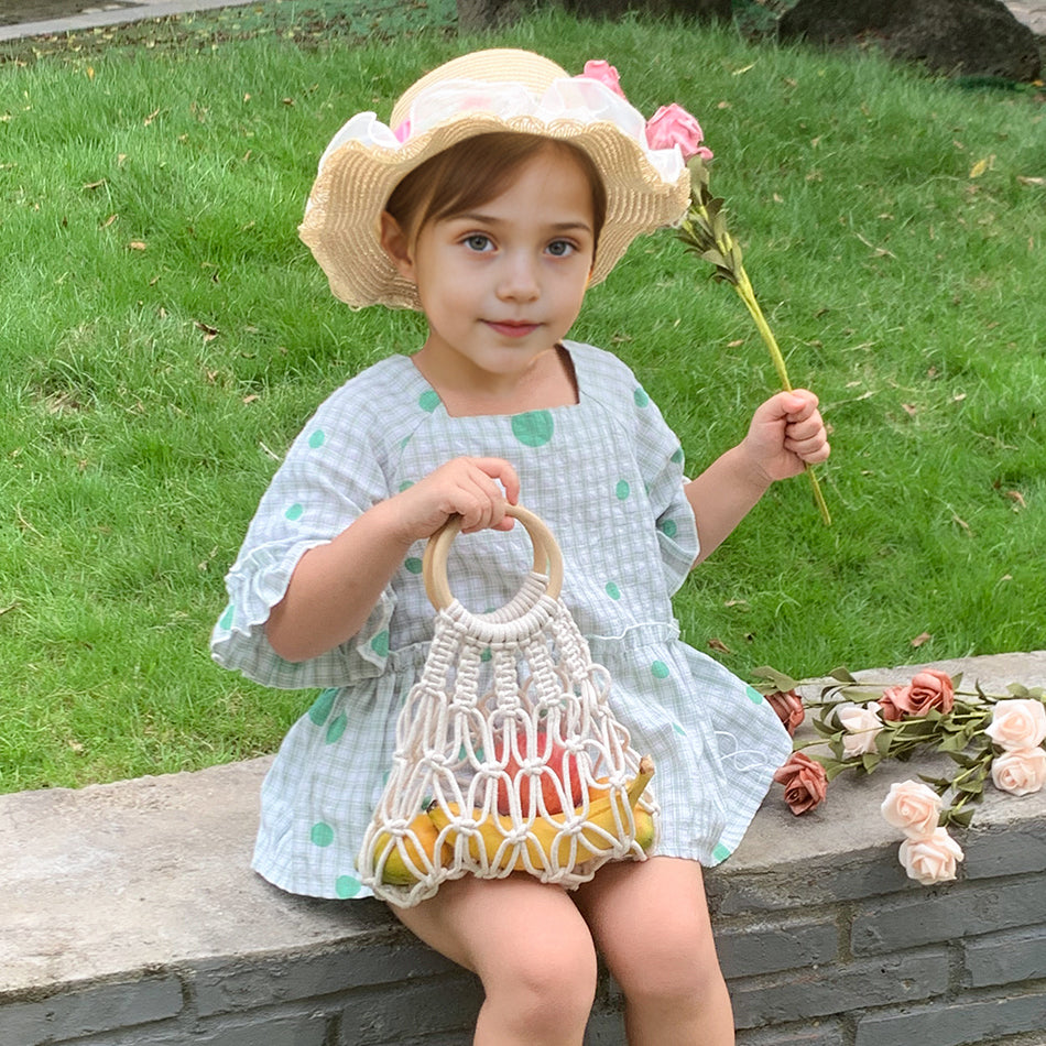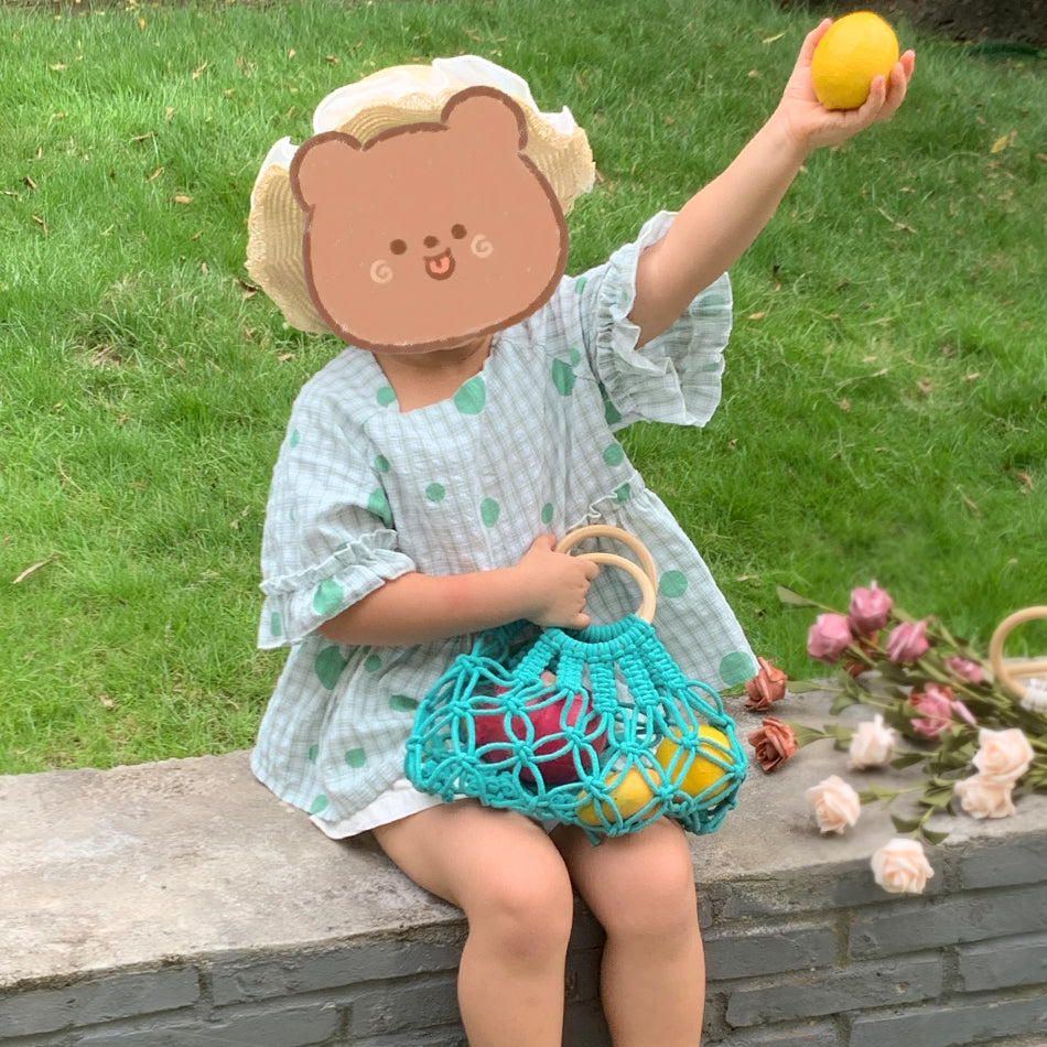 Macrame Kit Hollow Bag Weaving Kit | Dopamine Colors | Wooden Ring Handle | Commute/Outing Use | Beginner-Friendly