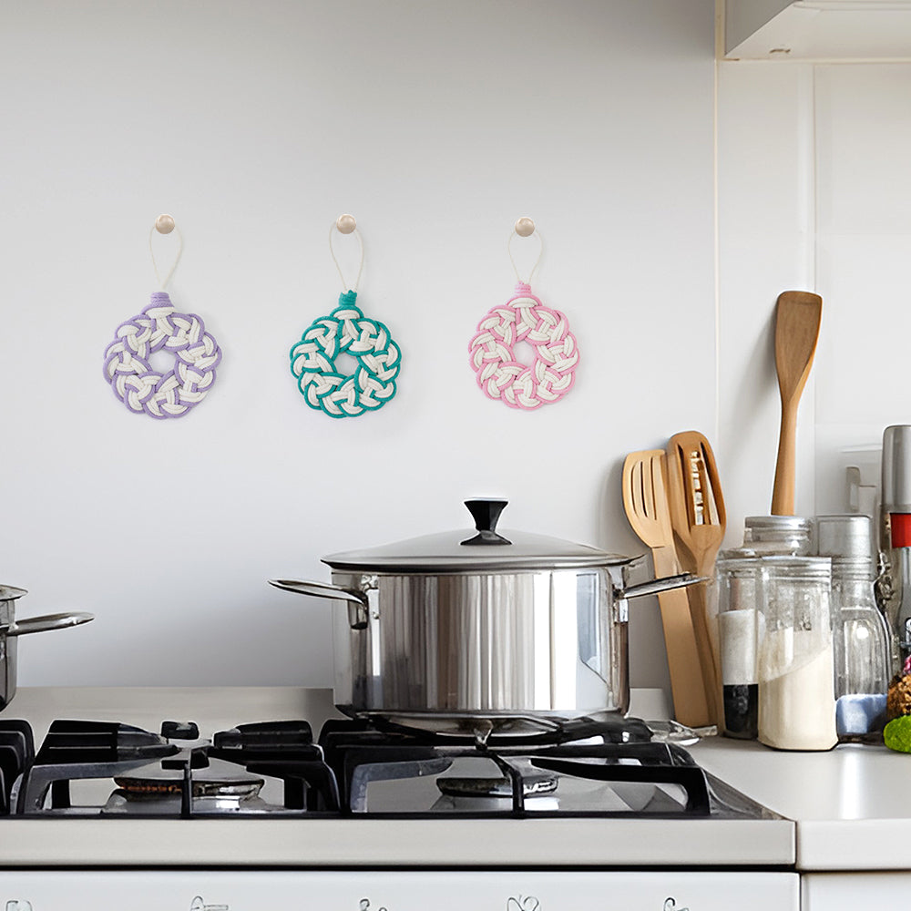 This Round Lace Coaster Weaving Kit (Macrame Kit) is a top choice for beginners and DIY lovers to create exquisite home items! each kit includes 2 colors of polyester weaving rope (4.5m each, the polyester is cored rope material, durable and non-deformable, with a straight and non-flimsy shape; light color base is interwoven with colored rope, which is as delicate as "edging" the coaster, with clear visual layers), 1 product weaving tutorial (steps are extremely intuitive, from round lace forming skills to colored rope interlacing methods, easy to understand with pictures and text, beginners can finish 1 coaster in 30 minutes).it fits Nordic, ins, and minimalist style homes, which can not only solve the problem of hot cups scalding the table, but also serve as a table decoration to enhance texture; compared with ordinary square coasters, the round lace design is more gentle and delicate. As an entry-level Macrame kit, it allows beginners to enjoy weaving fun and gain practical home items; giving it to friends as a small gift during festivals is lightweight and thoughtful—buy without hesitation!