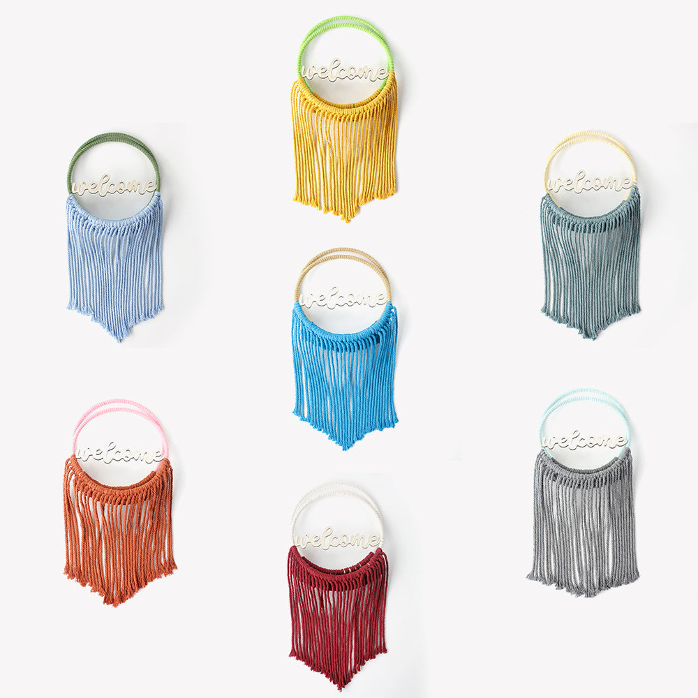 This Round Storage Basket Weaving Kit (Macrame Kit) is a top choice for beginners and DIY lovers to create Bohemian-style home storage! Material details are standardized and complete: each kit includes 2 colors of polyester weaving rope (1pc 5m, 1pc 16m, total length sufficient for weaving round basket body + tassels; polyester is tough and non-deformable, contrast color matching shows layers, fresh tones fit multiple home styles), 2pcs 15cm iron rings (sturdy rust-proof material, used as the basket skeleton to build a storage platform with good load-bearing capacity for small items like dolls and flowers), 1pc wooden piece (natural wood texture without odor, embellishing the basket to enhance handmade warmth), 1 product weaving tutorial,hanging on the living room or bedroom wall as wall-mounted storage to eliminate desktop clutter; Bohemian-style weaving texture + tassel design, it is also a high-value wall decoration when not in storage. Using it yourself improves space utilization, and wrapping it as a DIY gift for relatives and friends who are decorating new houses or love niche styles is both thoughtful and practical, with great cost-effectiveness!