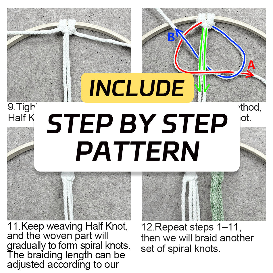 This Tree of Life Ring Weaving Kit (Macrame Kit) is a top choice for beginners and DIY lovers to create vibrant home decor! Material details are standardized and complete: divided into solid-color and multi-color versions——the solid-color version includes 22m polyester weaving rope, and the multi-color version includes 3 colors of polyester weaving rope (9m each). Both versions have sufficient length to weave the Tree of Life shape; polyester is tough and non-fading, with solid color for simple elegance and multi-color for stronger Bohemian atmosphere. Universal accessories include 1pc 15mm + 1pc 18mm wooden beads (strung on the hanging rope, matching sizes for layering, natural wood texture enhances natural vibe), 1pc 20cm bamboo ring (natural bamboo smooth without burrs, serving as a stable base to show the surrounding beauty of the Tree of Life), 1 bottle of 6ml white glue 1 product weaving tutorial,giving it to friends as a small gift during festivals is lightweight and thoughtful—buy without hesitation!