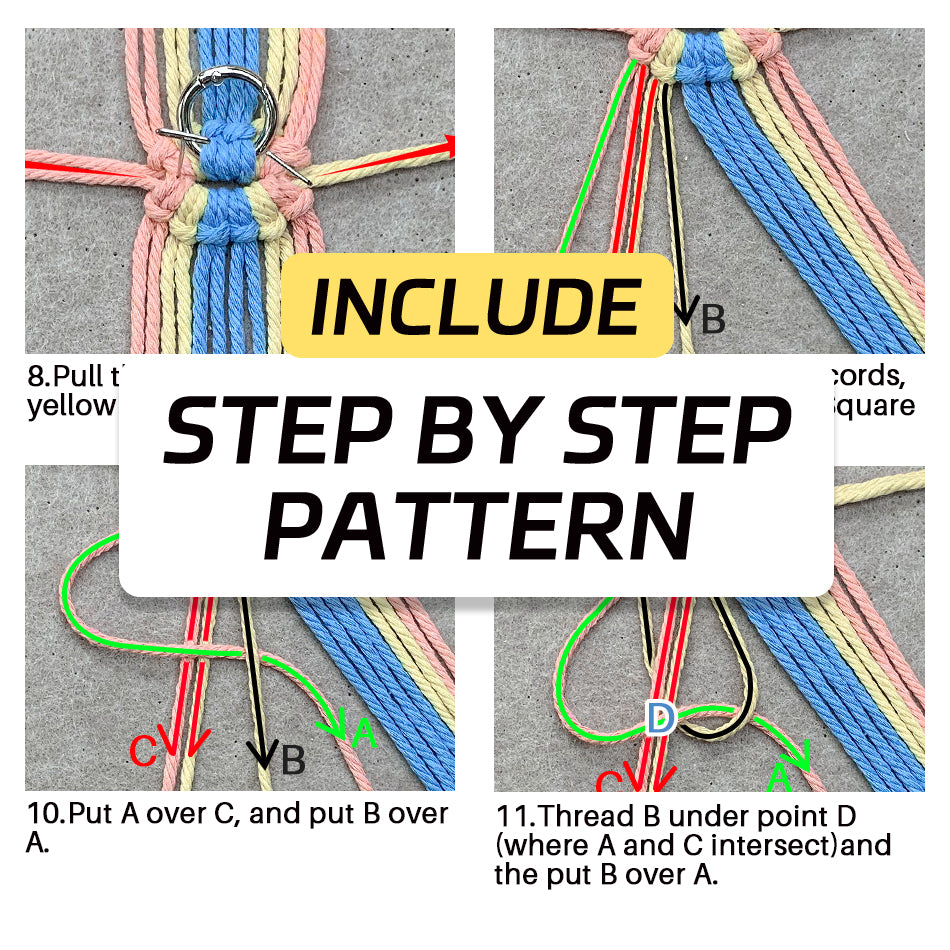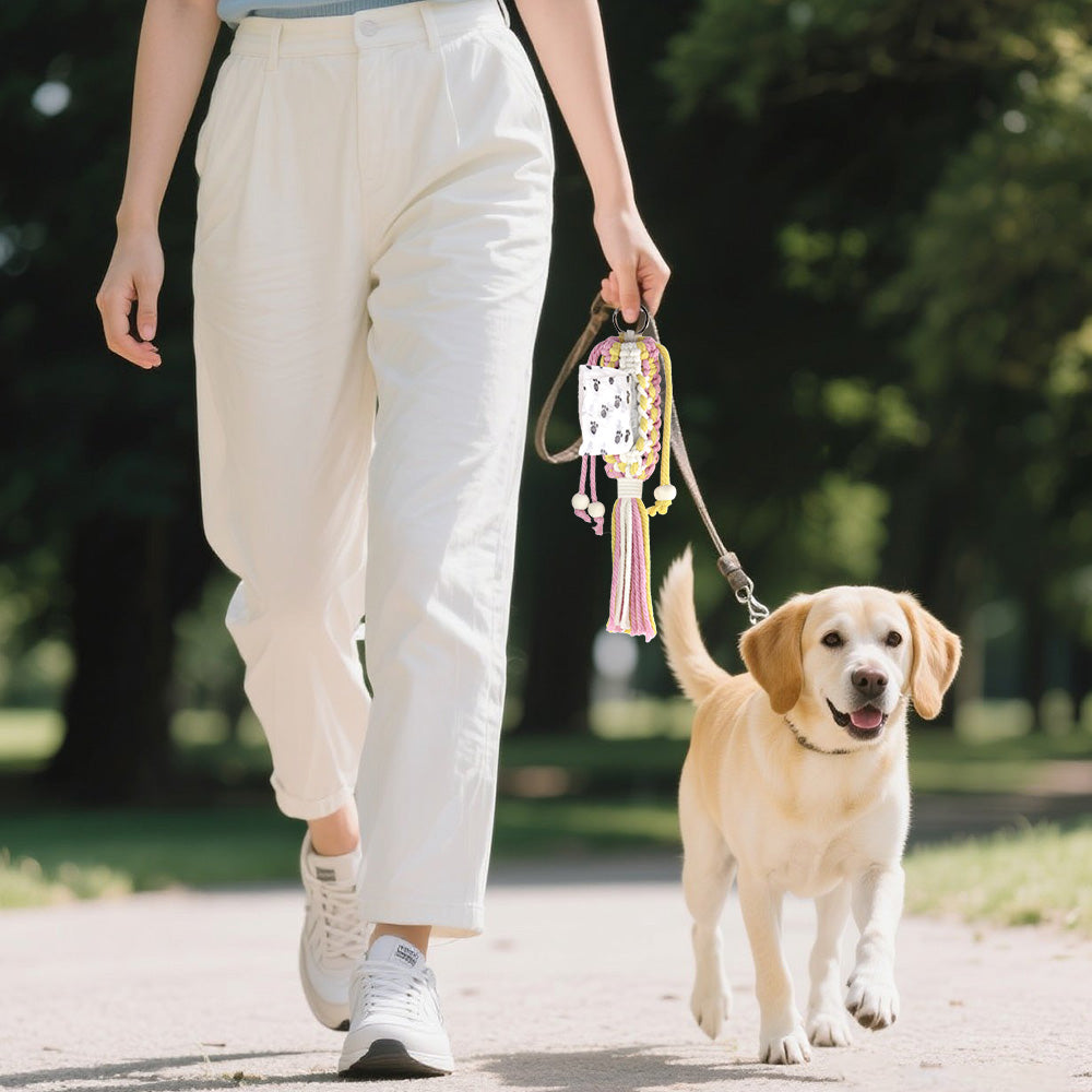 Want to match a "both stylish and practical" walking gear for your fur baby? This Pet Storage Bag Weaving Kit (Macrame Kit) fits perfectly! Materials are of high quality with clear specifications: 3 colors of polyester weaving rope (5m each, saturated color without fading, the storage bag is straight and not soft after weaving; 3 color systems adapt to different aesthetic preferences, easy for beginners to handle), 1 key ring spring buckle (rust-resistant and durable, not easy to break when hanging, suitable for high-frequency daily use scenarios), 4pcs 12mm wooden beads (clear natural wood grain, no odor, enhancing the texture of the storage bag after decoration), 1 roll of garbage bags (strong toughness and not easy to break, meeting the needs of multiple walks). The tutorial focuses on "beginner-friendliness": focusing on the forming skills of the side pull opening and the tightness control of the tassel, avoiding complex steps and ensuring zero failure.