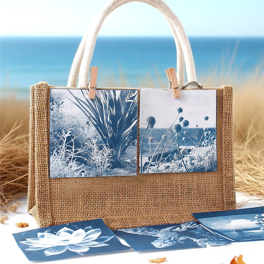 This 9.9*9.9cm Square Cyanotype DIY Craft Value Pack is designed for cyanotype beginners, DIY enthusiasts and photography lovers exploring the mystery of sun photography, with great cost-effectiveness! The core material of the kit is 24 sheets of high-quality 9.9*9.9cm cyanotype paper — with uniform light sensitivity and clear imaging. The square size is not only easy for designing creative patterns, but the finished product can also be hung as decoration; matching with photos to make a long photo wall enhances the retro atmosphere, easily unlocking diverse usages.