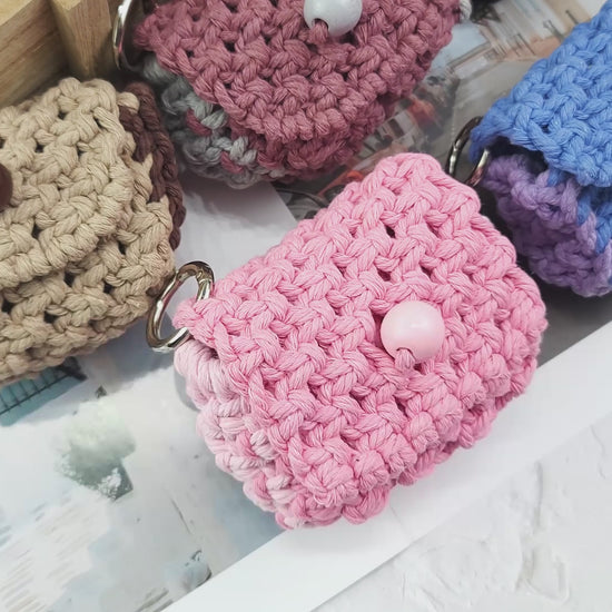 Square Earphone Bag Weaving Kit Macrame Kit | Bead Buckle Anti-Drop | Multi-Storage Use | DIY Gift | Beginner-Friendly