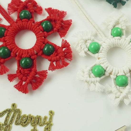 Wooden Bead Woven Snowflake Ornament Kit - Macrame Kit for Christmas Decoration, Car & Bag DIY Accessory&Holiday Decoration